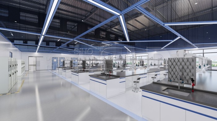 Instrument placement optimization, vibration isolation planning, chemical storage room design, sample preparation workflow